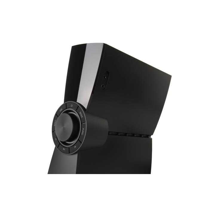 Ηχεία 2.1 για υπολογιστή με τεχνολογία DSP και ασύρματο χειριστήριο. Υποστηρίζεται σύνδεση Bluetooth, microUSB και 3.5mm. Το ασύρματο χειριστήριο και τα δύο ηχεία που μπορούν να σταθούν κάθετα ή οριζόντια σου δίνουν τον έλεγχο της αναπαραγωγής (από την άλλη άκρη του χώρου σου) αλλά και της εμφάνισης του γραφείου σου αντίστοιχα. Μπορείς να συνδέσεις τα ηχεία μέσω Bluetooth, microUSB (το καλώδιο USB δεν περιλαμβάνεται στη συσκευασία και πρέπει να αγοραστεί ξεχωριστά) ή 3.5mm ή ακόμα και με τους τρεις τρόπους, με δυνατότητα εναλλαγής μεταξύ τους. Ακόμα και από την άλλη άκρη του δωματίου.