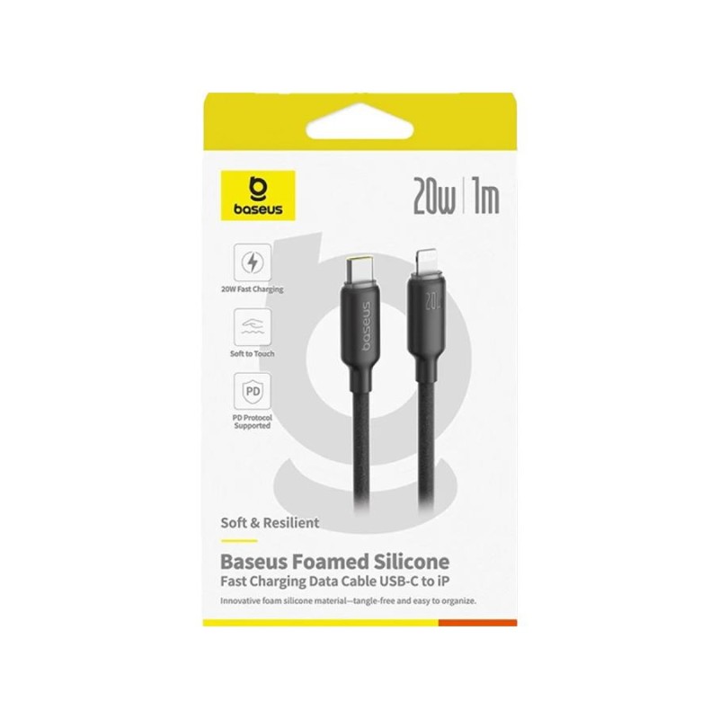BASEUS FOAMED SILICONE, ΚΑΛΩΔΙΟ ΓΡΗΓΟΡΗΣ ΦΟΡΤΙΣΗΣ, TYPE-C ΣΕ LIGHTNING, 20W, 1M, ΜΑΥΡΟ