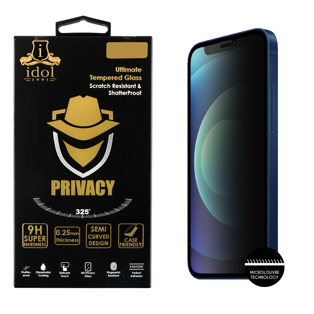 IPHONE 12 MINI IDOL 1991 TEMPERED GLASS 5.4″ 9H 0.25mm PRIVACY ANTISPY SEMI CURVED FULL GLUE BLACK