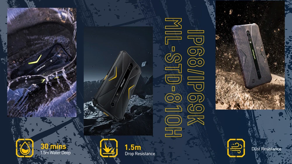 Στιβαρό, εντυπωσιακό και εξαιρετικά αποδοτικό smartphone της ULEFONE, με πιστοποίηση IP68/IP69K/MIL-STD-810H για να αντέχει σε νερό, σκόνη, πτώσεις και ακραίες καιρικές συνθήκες.